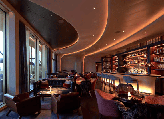 The spectacular Eagle Bar on the 7th floor is overlooked by its namesake the original 1960s gilded Eagle sculpture by Theodore Roszak, which originally adorned the former US Embassy.   The atmosphere is described as having “sunset golden glow” vibes, ideal for after-work drinks.